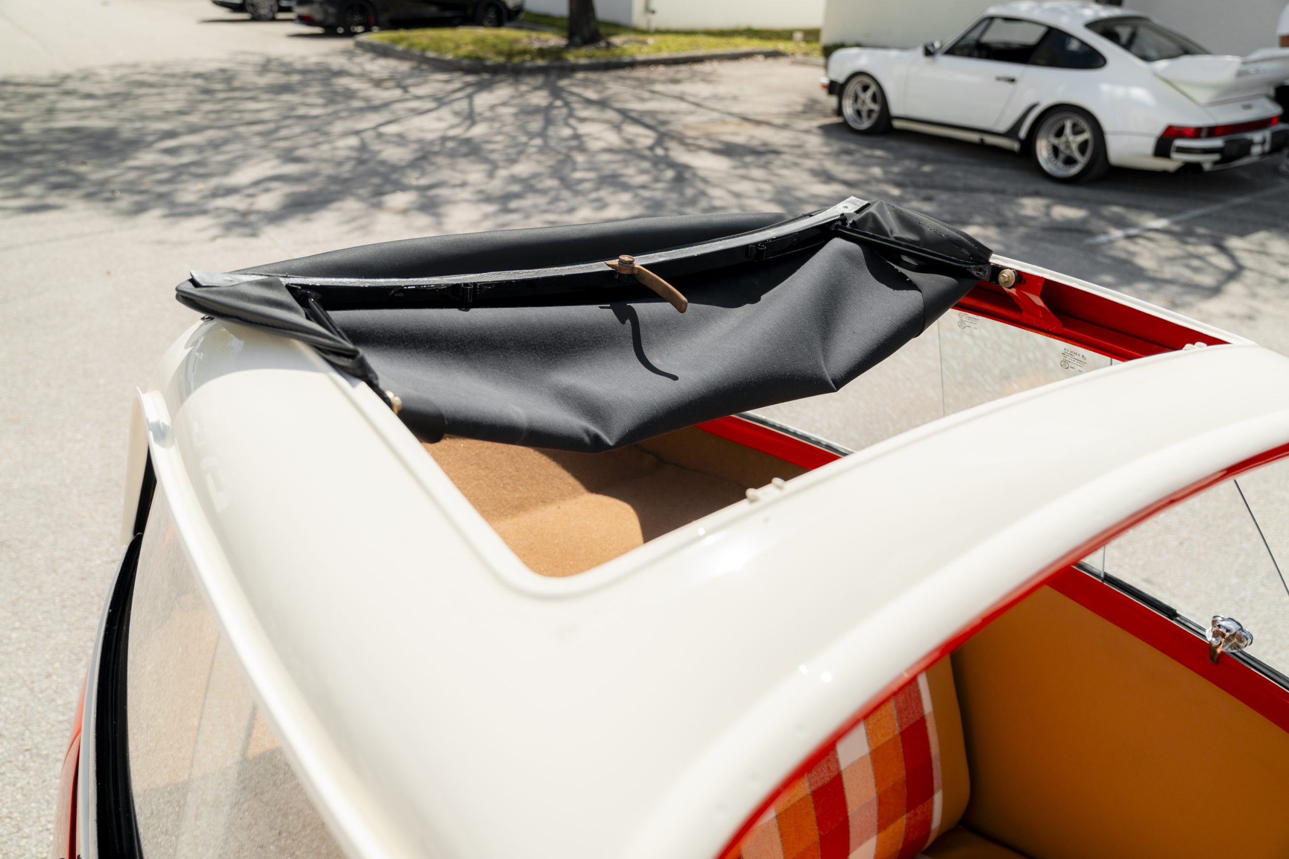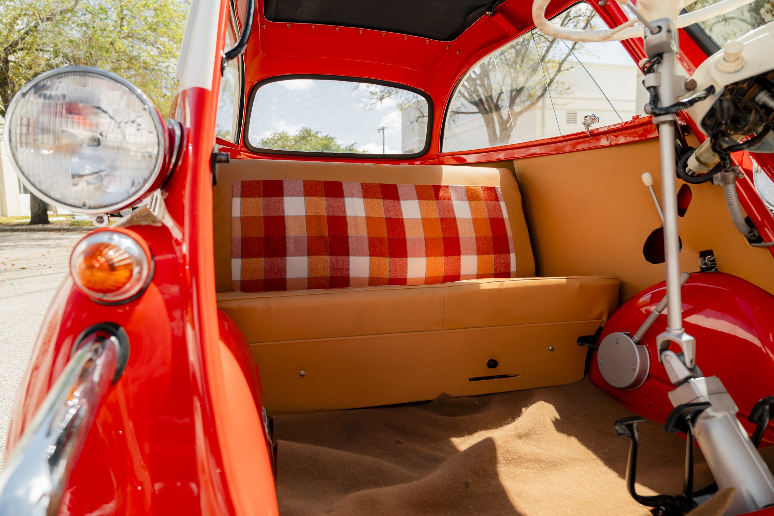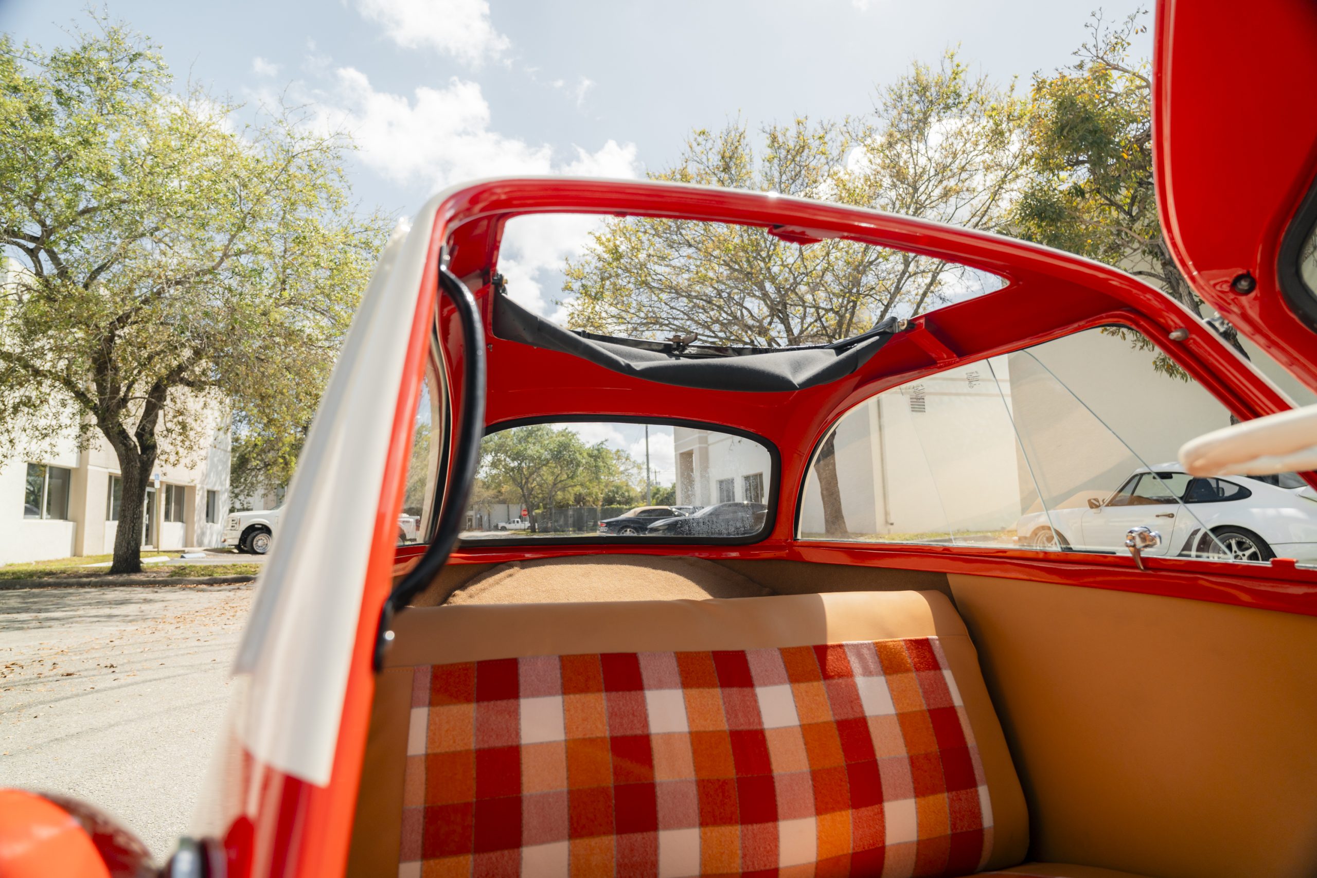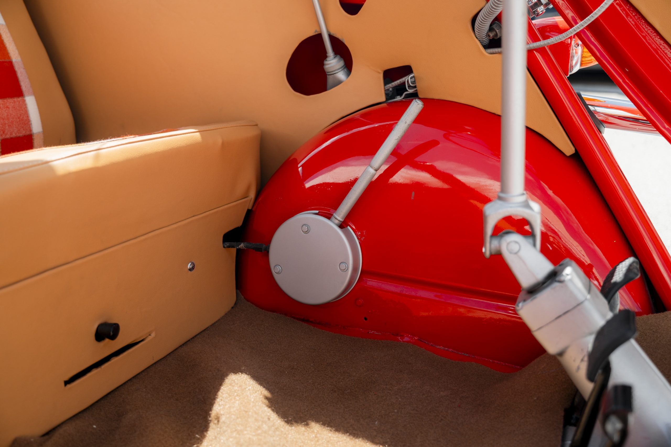 Nicely restored example in period correct Coral red – Plaid interior